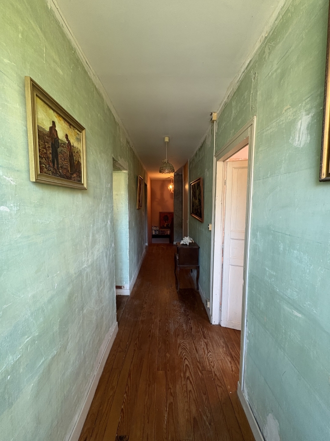Au rez de chaussée une pièce de vie avec conduit de cheminée, une cuisine , une arrière cuisine et un wc . Le tout agrémenté d'un garage et d'un petit jardin arboré d'environ 51 m2. Quelques travaux dont les menuiseries seront à prévoir.