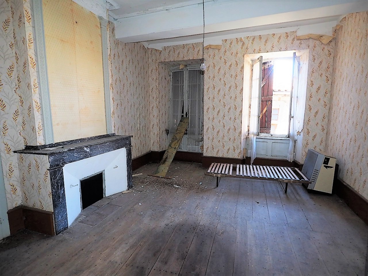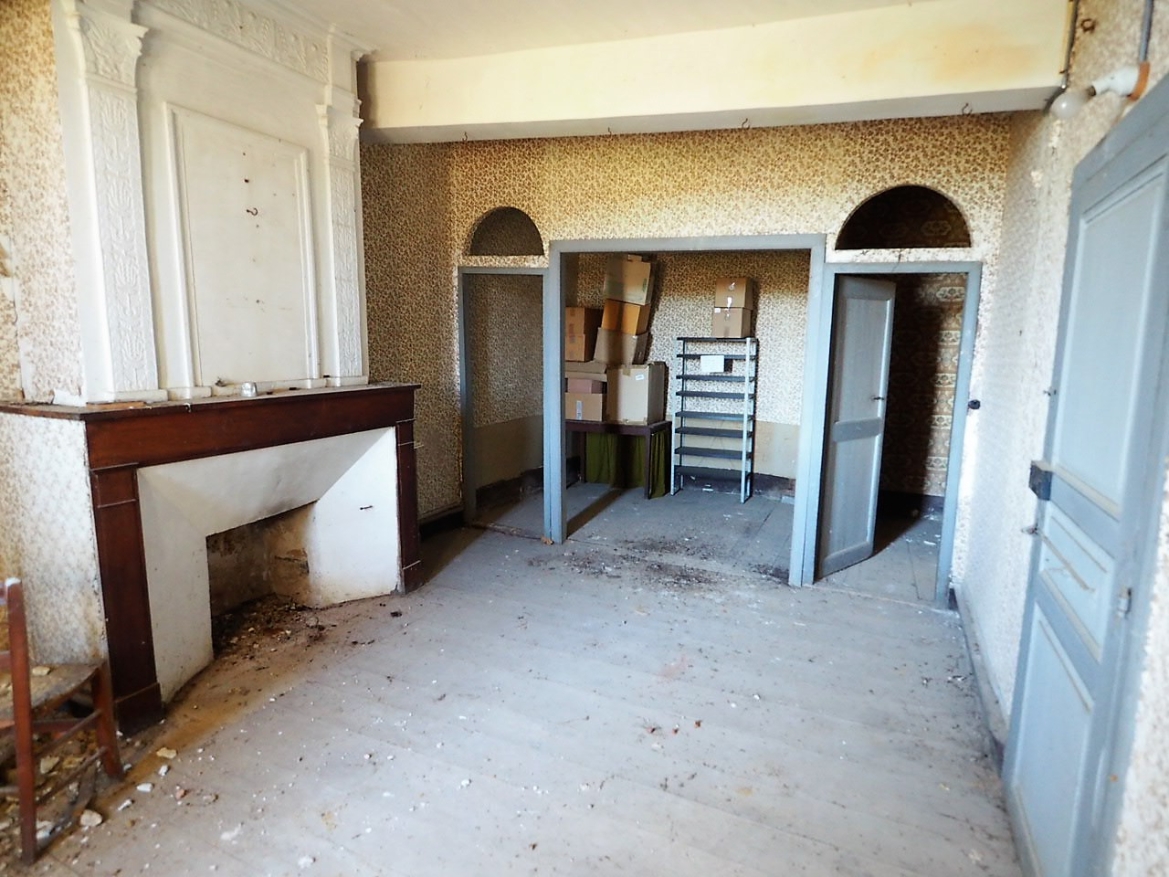 Un bel escalier monumental conduit à l'étage qui est à rénover entièrement. Surface disponible de 150 m2 environ. Les sols, tomettes et parquet ancien, sont en bon état pour la plupart et les cheminées également.