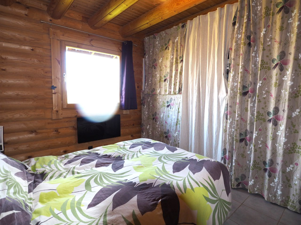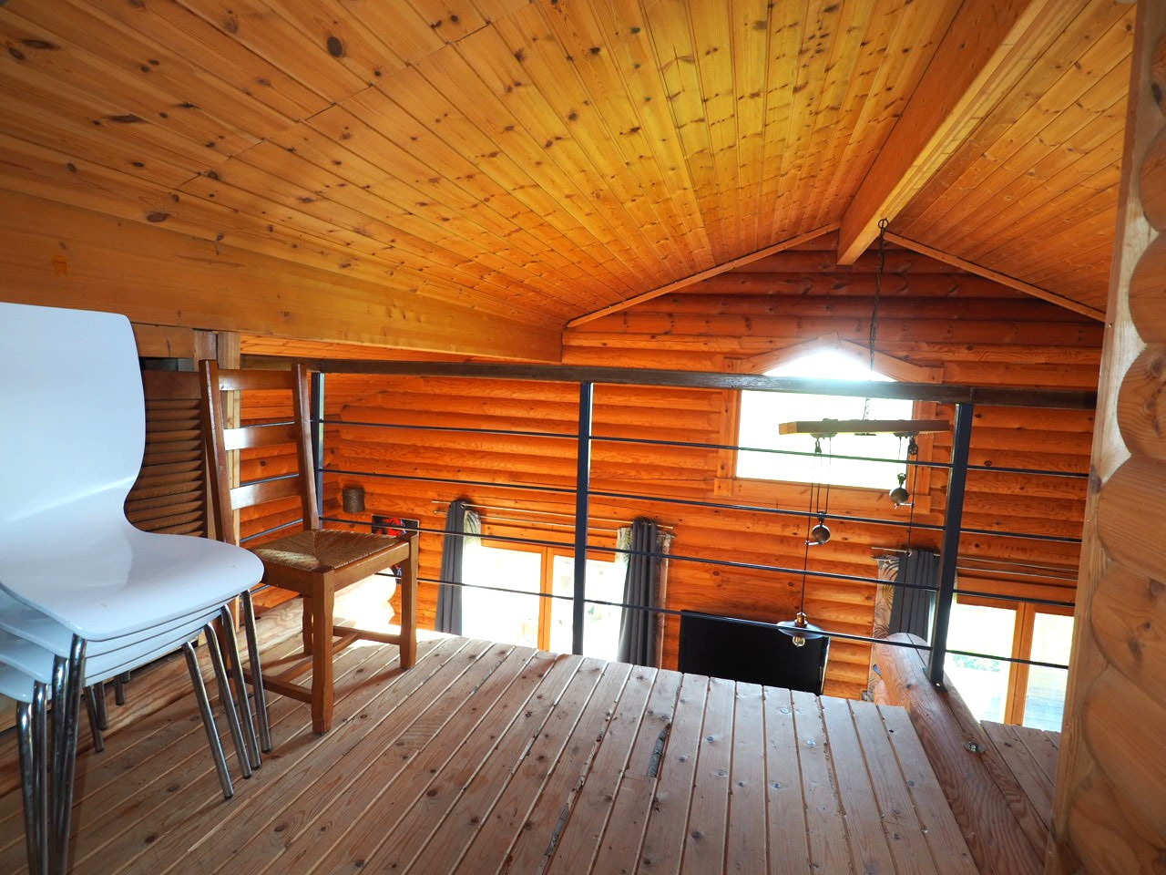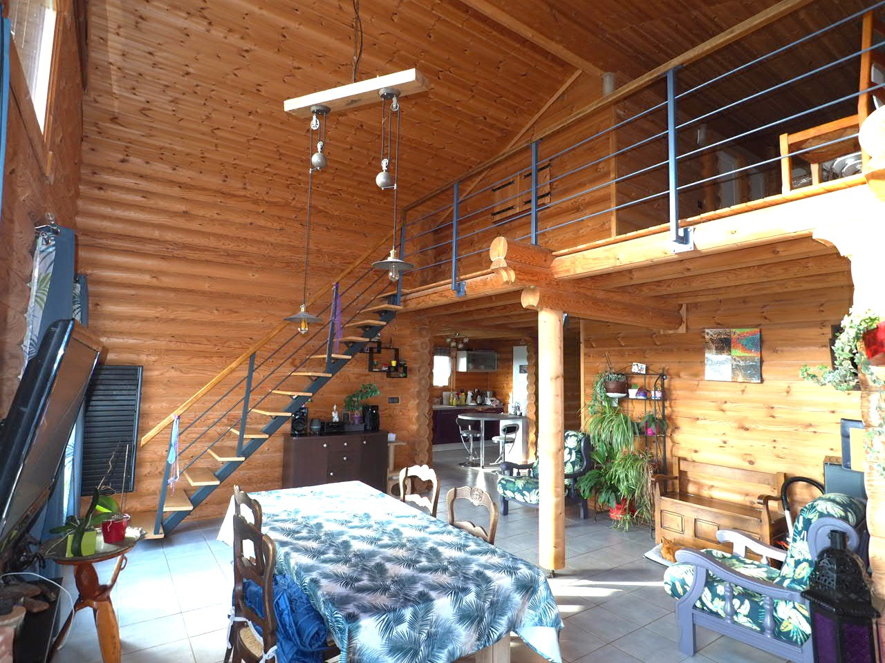 - rdc: entrée, wc séparés, coin cuisine aménagée avec une porte vitrée ouvrant sur la terrasse Sud-Ouest, grand séjour de presque 30 m2 avec poêle à granules et 2 portes-fenêtres ouvrant sur une grande terrasse Sud, espace nuit comprenant des rangements, 2 chambres et une salle d'eau.