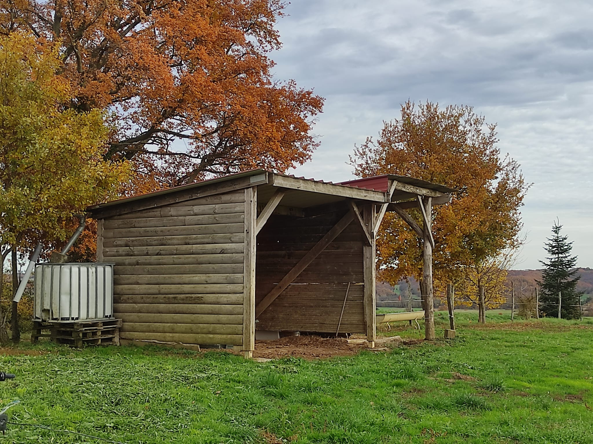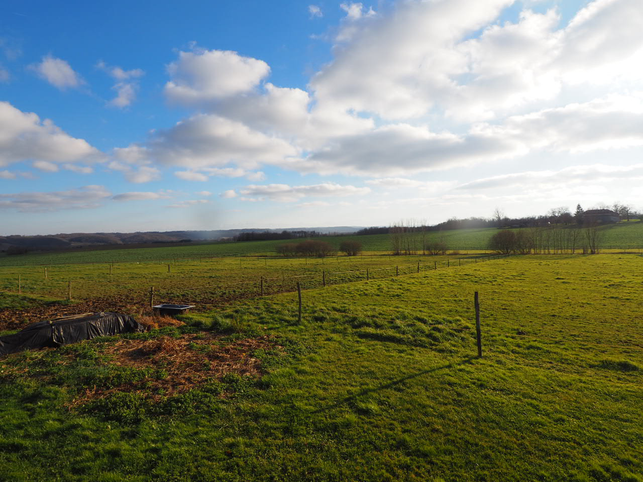 A l'extérieur, les terres sont plates, irrigables et n'ont jamais reçu de pesticides. Elles accueillent aujourd'hui des chevaux, divisées en plusieurs espaces avec clôtures électriques et 2 abris en bois. Pour finir, un mobile-home habillé de bois, disposant de 2 chambres, permettra d'accueillir un peu de monde quand vous le souhaiterez.